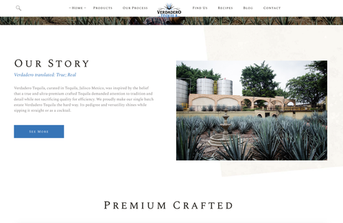 Web design for Verdadero Tequila. A high end premium Tequila Brand.